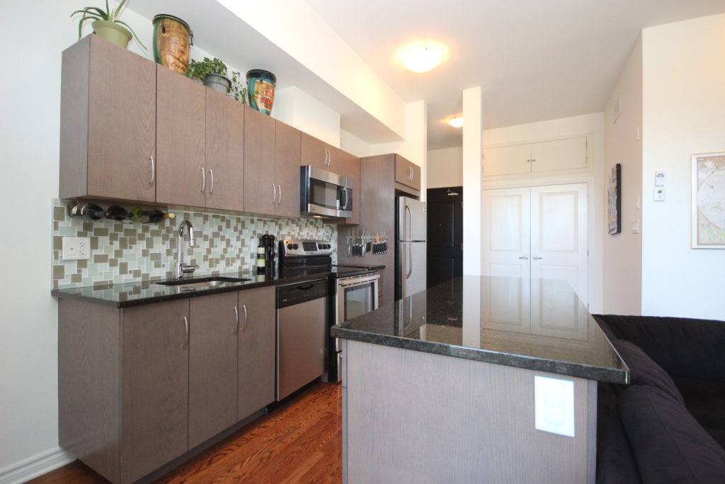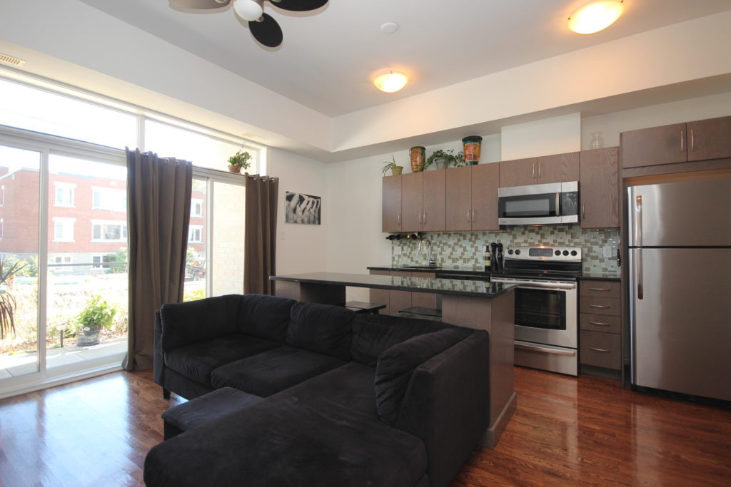 Stunning and bright, 2 bedroom condo steps from Westboro Village! Excellent layout with 835 sq ft including beautiful walkout terrace. Open-concept design with upgraded Deslaurier kitchen with custom centre island, granite counters, stainless steel appliances & glass tile backsplash. Rich hardwood floors throughout. Two large bedrooms, both with excellent closet space. Gorgeous main bath with quartz counters. In-unit laundry. 1 underground parking & locker included